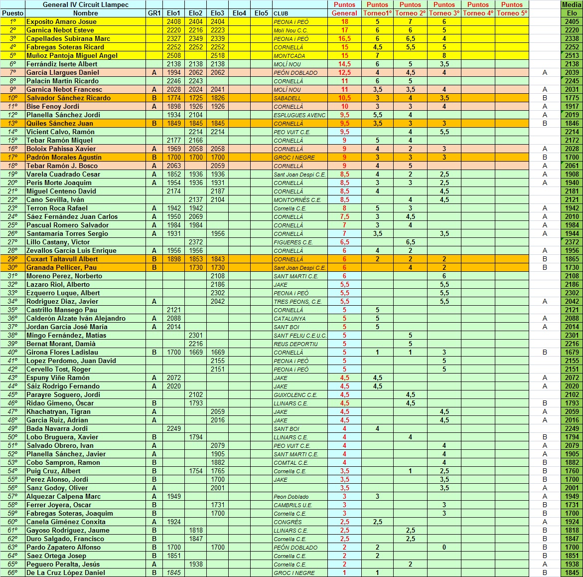 Inscritos 3er. Torneig del 4art. Circuit Llampec